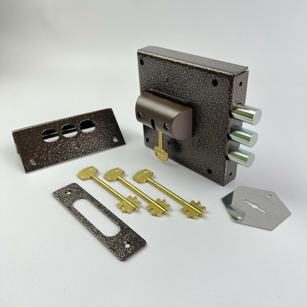 Дверной и гаражный замок накладной сувальдный с постоянным ключом CERBER С1-П БЗ ЗНУ-П 014 (3 ключа *60 мм ) без ответной планки 4 487 ₽