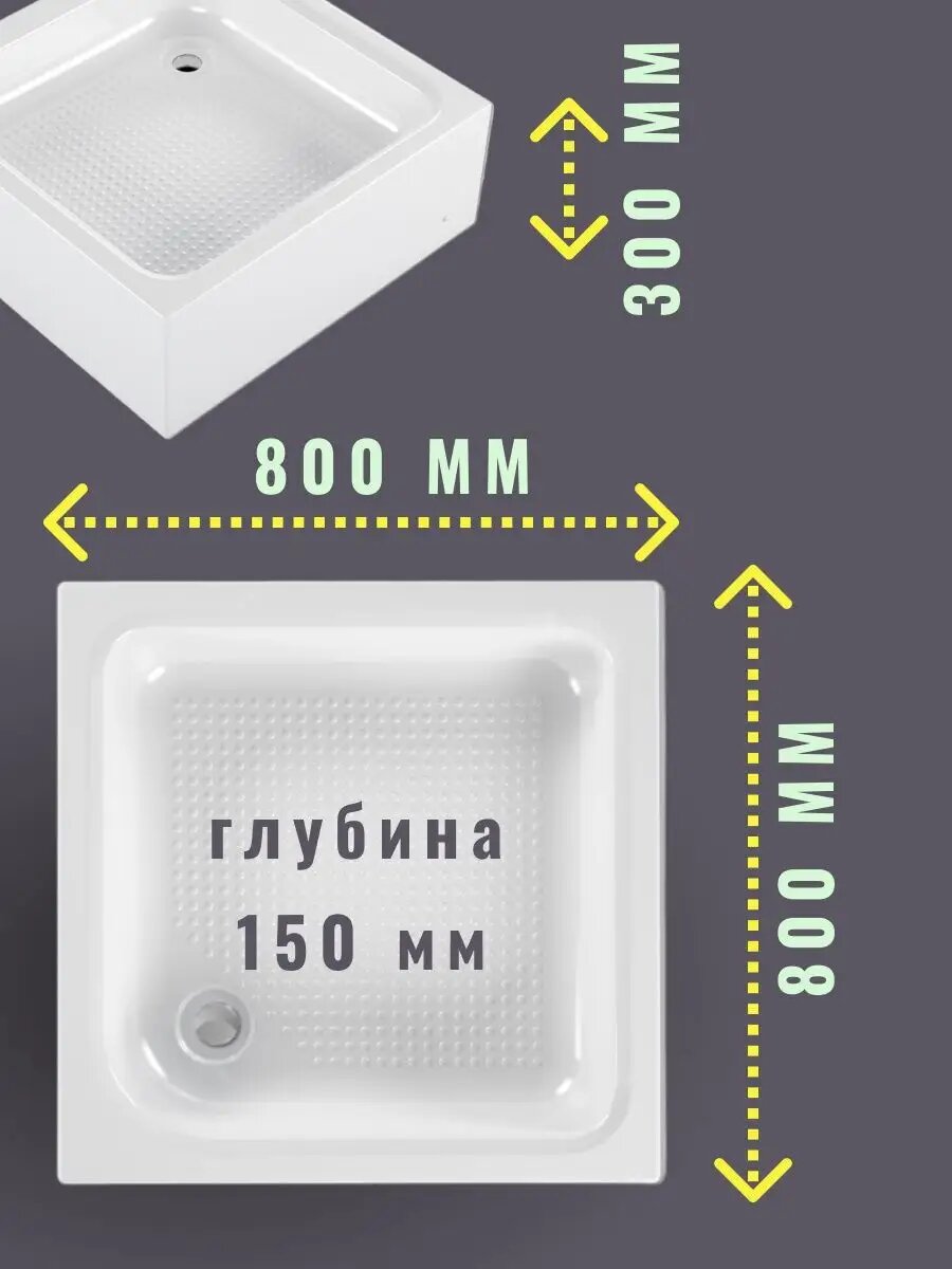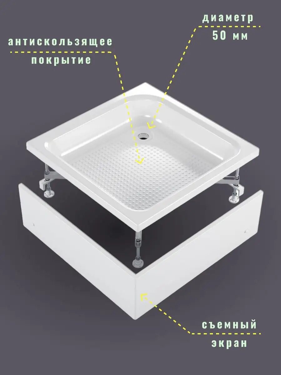 Поддон для душа акриловый квадрат 80х80 с каркасом и экраном информация:
