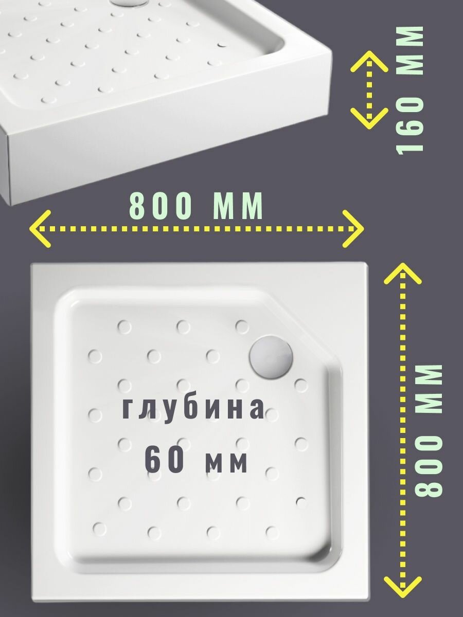 Поддон для душа акриловый квадрат 80х80 с каркасом и экраном 16 см информация: