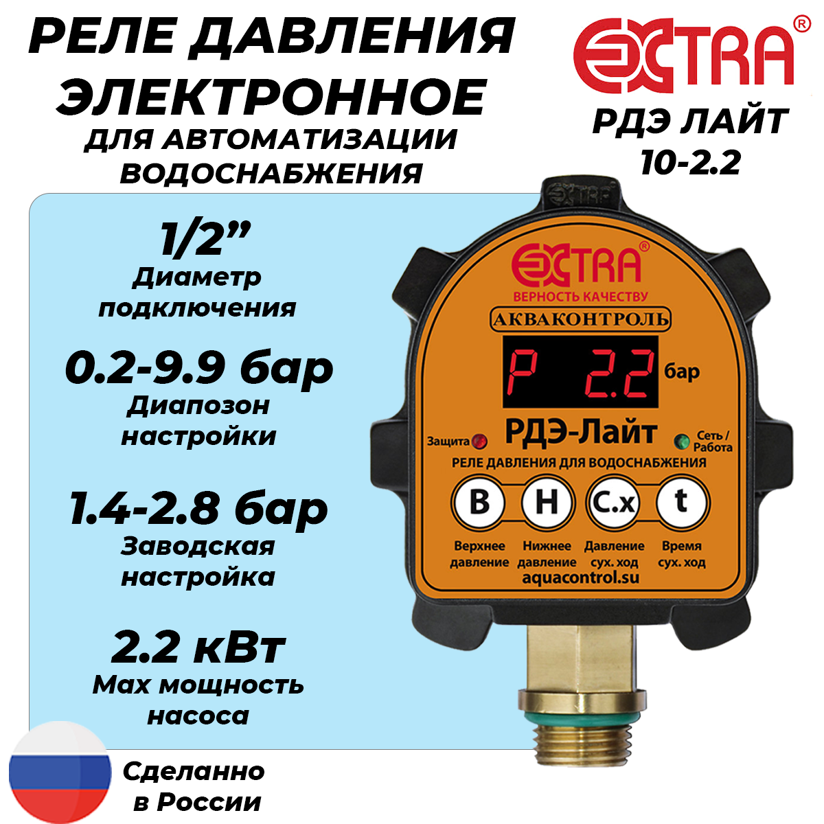 Реле давления воды для насоса Extra Акваконтроль РДЭ-10-2,2 / Автоматика для насоса / Подключение G 1/2"