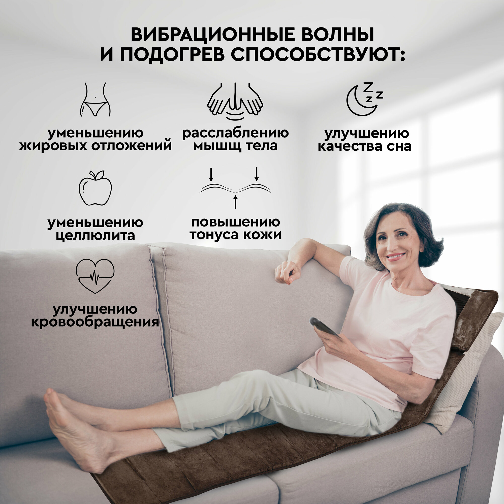 | Дополнительная информация | Размеры съемной массажной подушки: 28х48 см. |