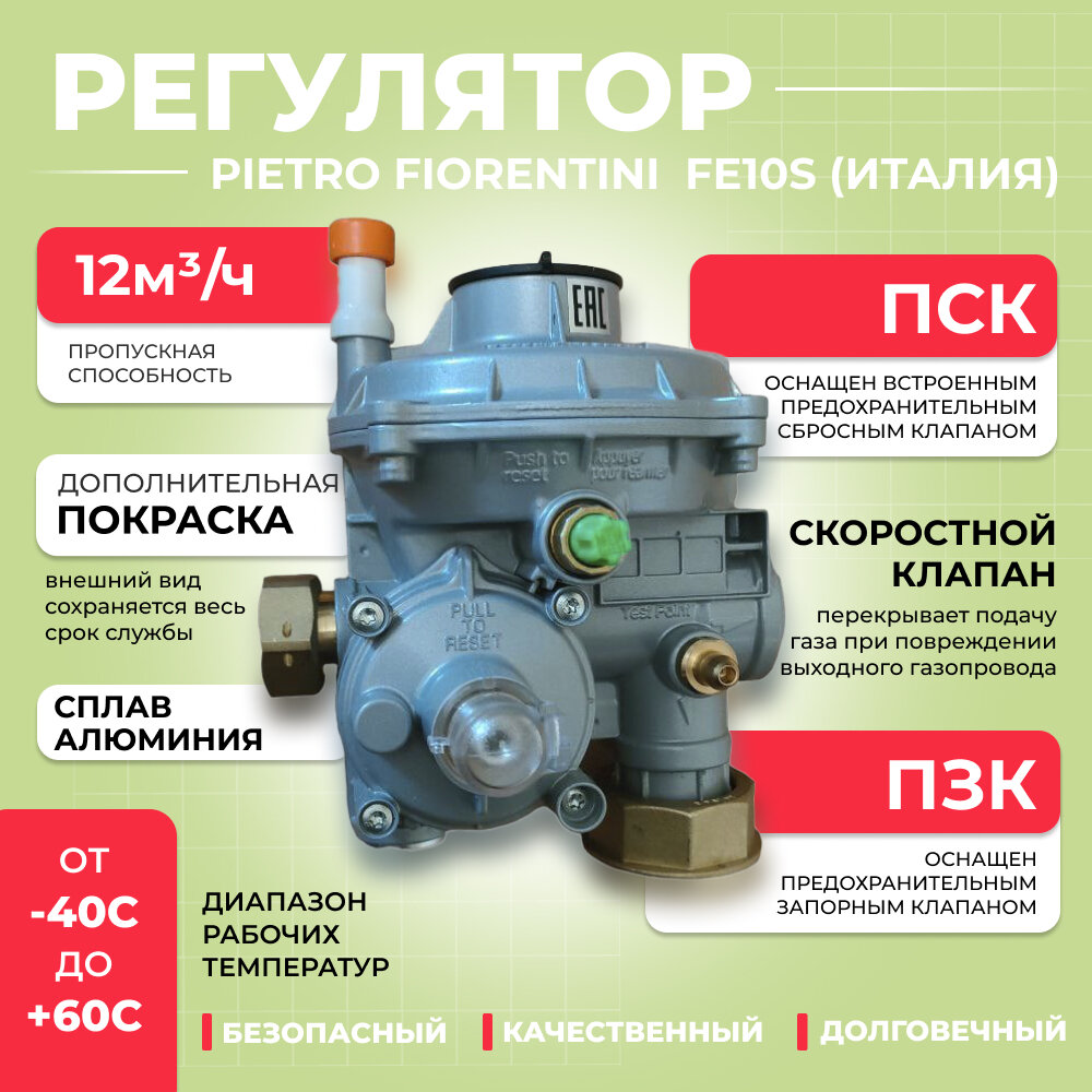 0 отзывов, средняя оценка 0. Чтобы купить «Регулятор давления газа Pietro Fiorentini FE10 S (угловой)» по лучшей цене мы сканируем авито, алиэкспресс, маркет, озон, савеловский, плеер, горбушку, беру, официальные сайты и находим минимальную. Администрация не несет ответсвенность актуальность цен на Регулятор давления газа Pietro Fiorentini FE10 S (угловой), более подробно узнавайте на сайте магазина.
