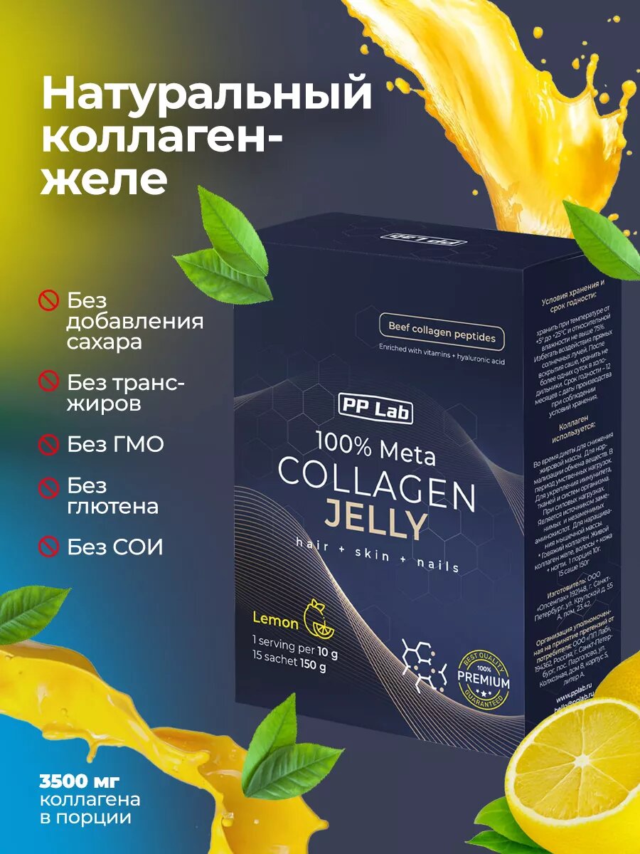 PP Lab Collagen / Вкус Лимон. 15 саше. Коллаген желе с витаминами и гиалуроновой кислотой для суставов, для кожи, волос и ногтей информация: