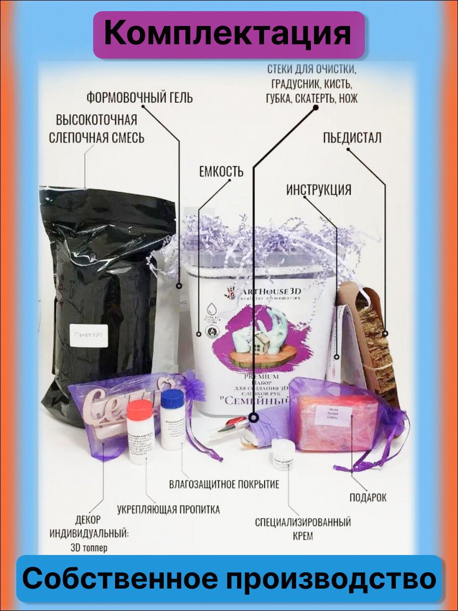 10 цен на Большой 3D слепок Семейный до 6 рук