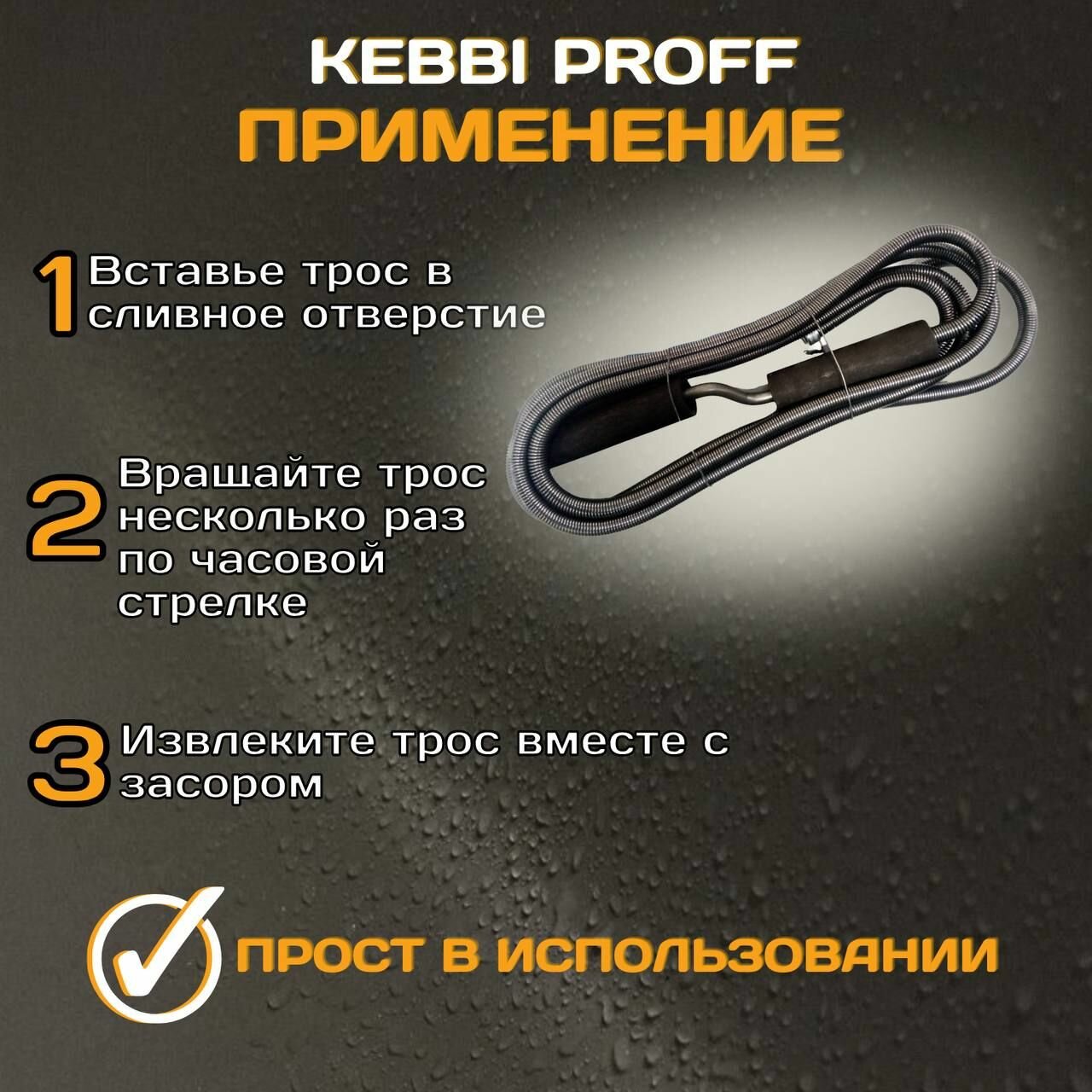 Трос сантехнический KEBBI PROFF d-13мм L-2,5м для устранения засоров в системе канализации, трос для прочистки труб, чистка канализации 684 ₽