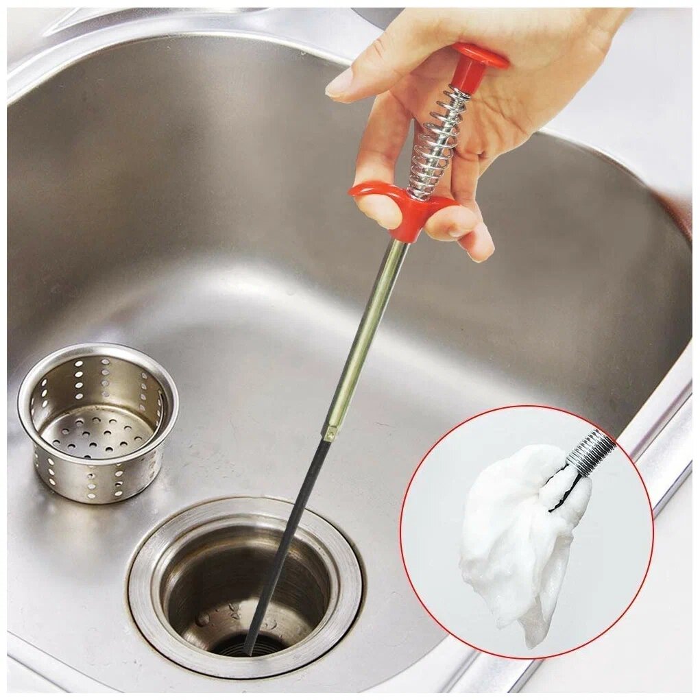 10 цен на Трос для прочистки труб. Гибкий щуп, улавливатель от засоров в трубах на пружине HypeGoods, улавливатель мусора и волос из водостока, 60 см