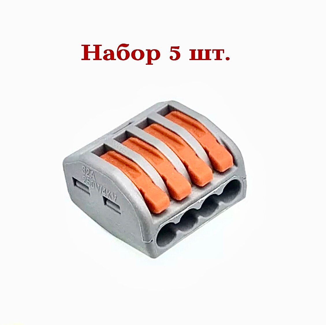 Клеммы для проводов Ekollon, быстрозажимные, 4 контакта, 32A, 220В, 5 штук 310 ₽