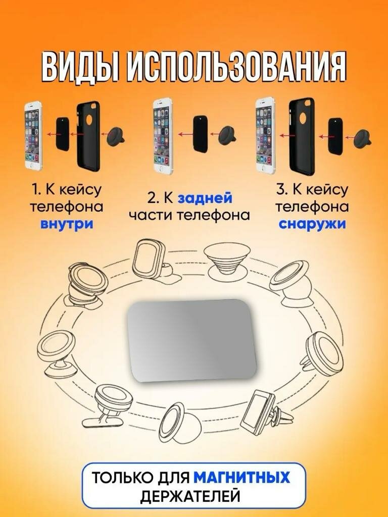 Пластина для магнитного держателя комплект 5 шт., магнитная металлическая пластина для держателя телефона, комплект для автодержателя смартфона, пластины - 5шт, 50х38 мм информация: