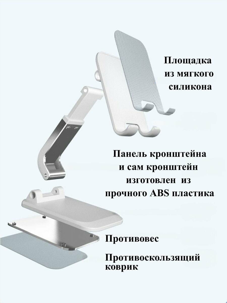 Подставка для телефона, универсальный держатель для смартфона, крепление на стол, для любых телефонов и айфонов. Белая информация: