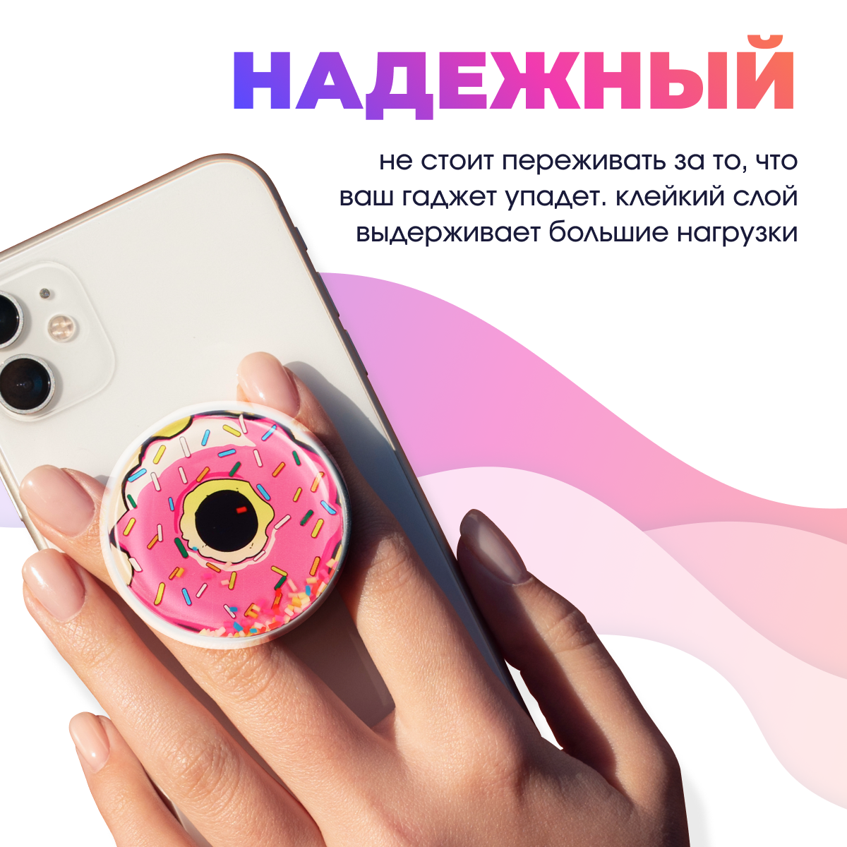 | Дополнительная информация | Попсокет для телефона позволяет надежно удерживать девайс в одной руке, не боясь его выронить. Можно с легкостью использовать в качестве подставки. |