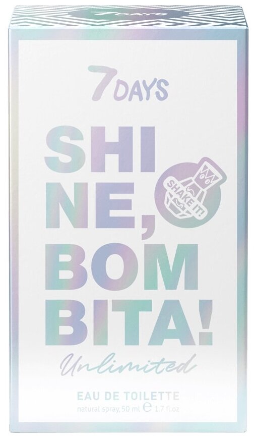 10 цен на Духи с шиммером и мерцанием цитрусовые 50 мл 7DAYS SHINE, BOMBITA! Женские с блестками цветочно - фруктовые UNLIMITED!