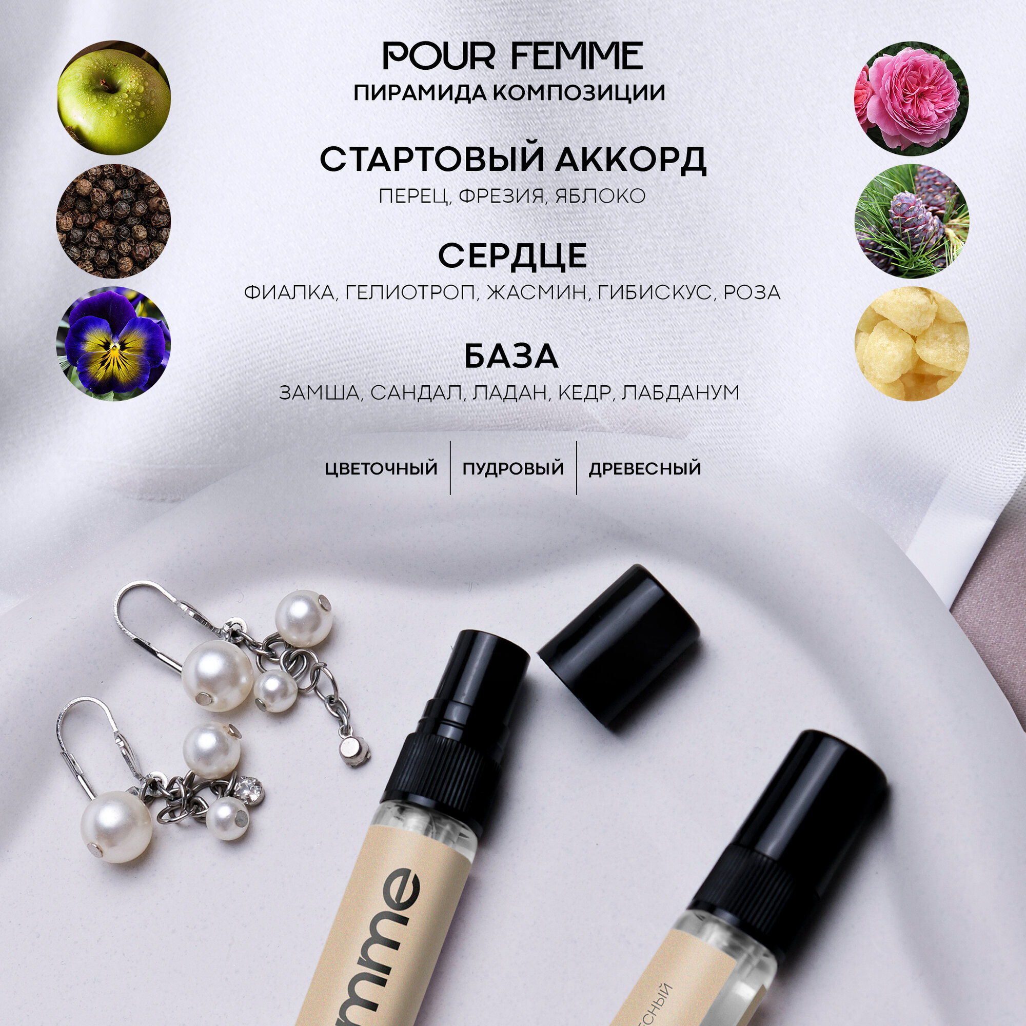 | Состав набора | Фрезия, перец, яблоко, фиалка, гелиотроп, жасмин, гибискус, роза, замша, сандал, кедр, ладан, лабданум |