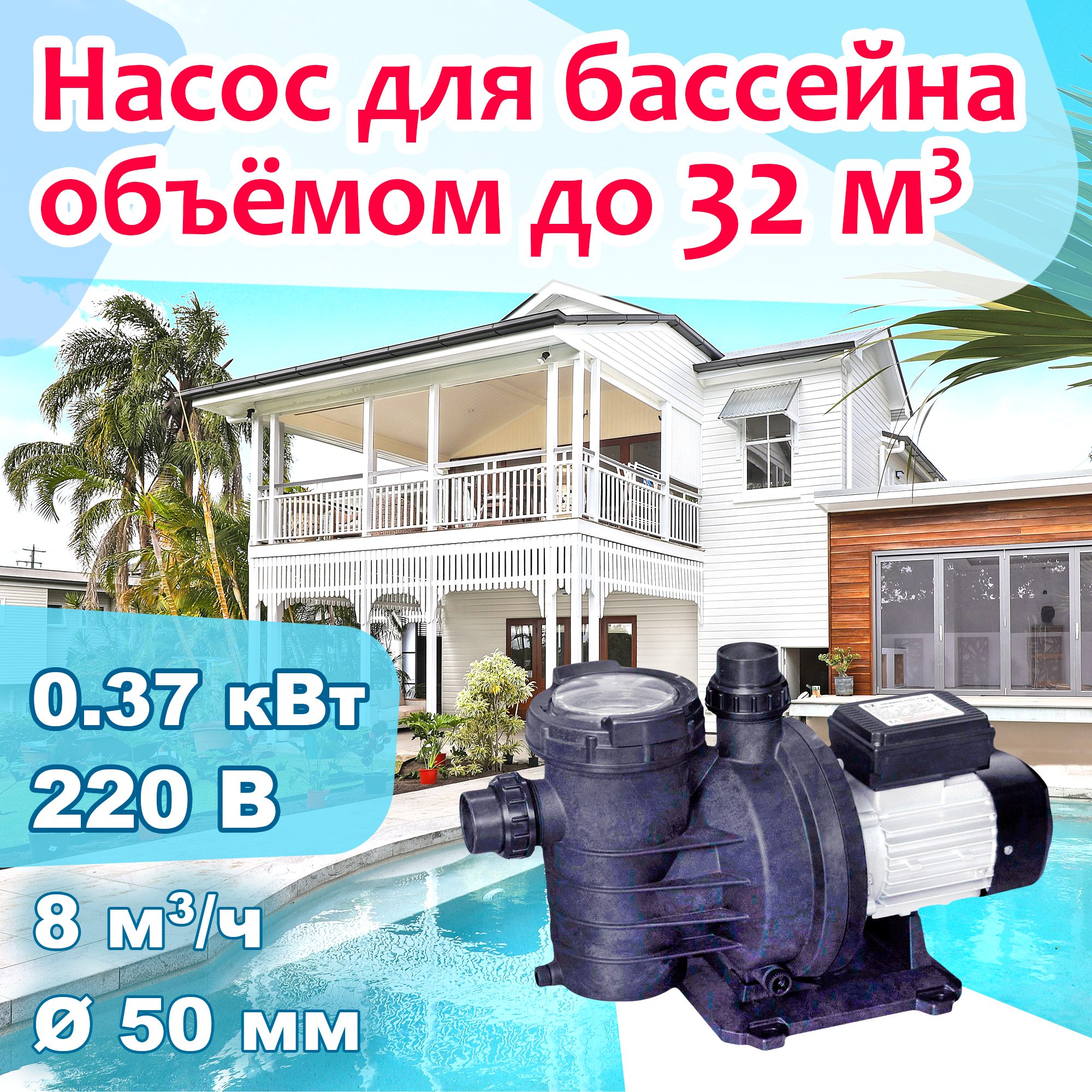 Насос для бассейна до 32 м3 с префильтром - 8 м3/ч при h4м, 0.37 кВт, 220В, d50мм информация: