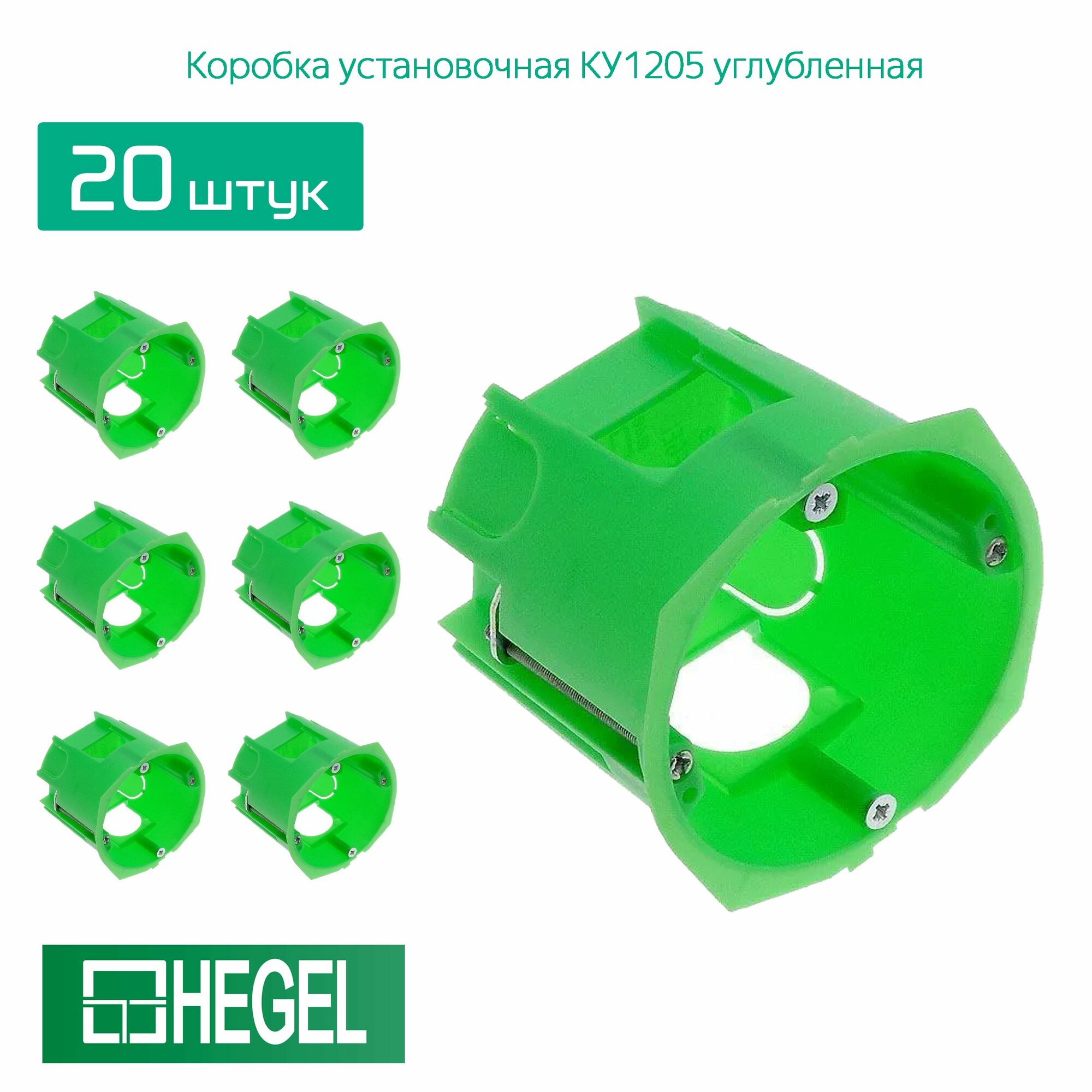 10 цен на Коробка установочная HEGEL 68x60 углубленная IP20 КУ1205 по гипсокартону с металлическими лапками 20штук