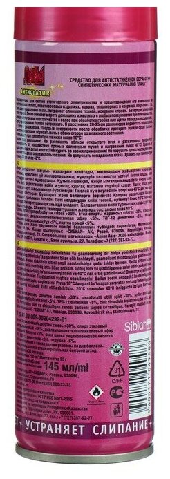 | Дополнительная информация | Продукт безопасен для использования на различных типах материалов, включая натуральные и синтетические ткани, не оставляя следов и не повреждая поверхности изделий. 5. Удобная флакон-распылитель позволяет равномерно распределить антистатик на поверхности и точно дозировать его использование, что делает его экономичным в использовании. Антистатик Лана 145мл розового цвета - это незаменимый товар для всех, кто хочет избавиться от неприятного статического эффекта на своей одежде. Будьте всегда уверены и комфортны благодаря этому эффективному и стильному решению. |