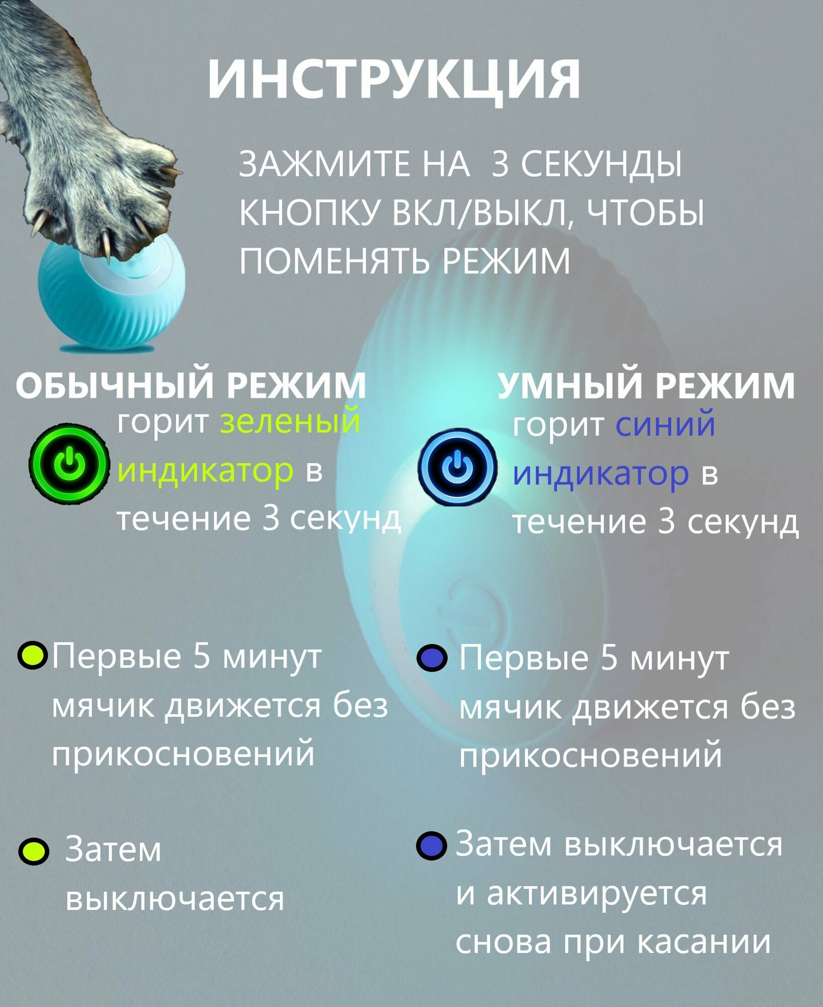 Отзывы на Интерактивная игрушка для кошек и собак, умный мячик цвет голубой