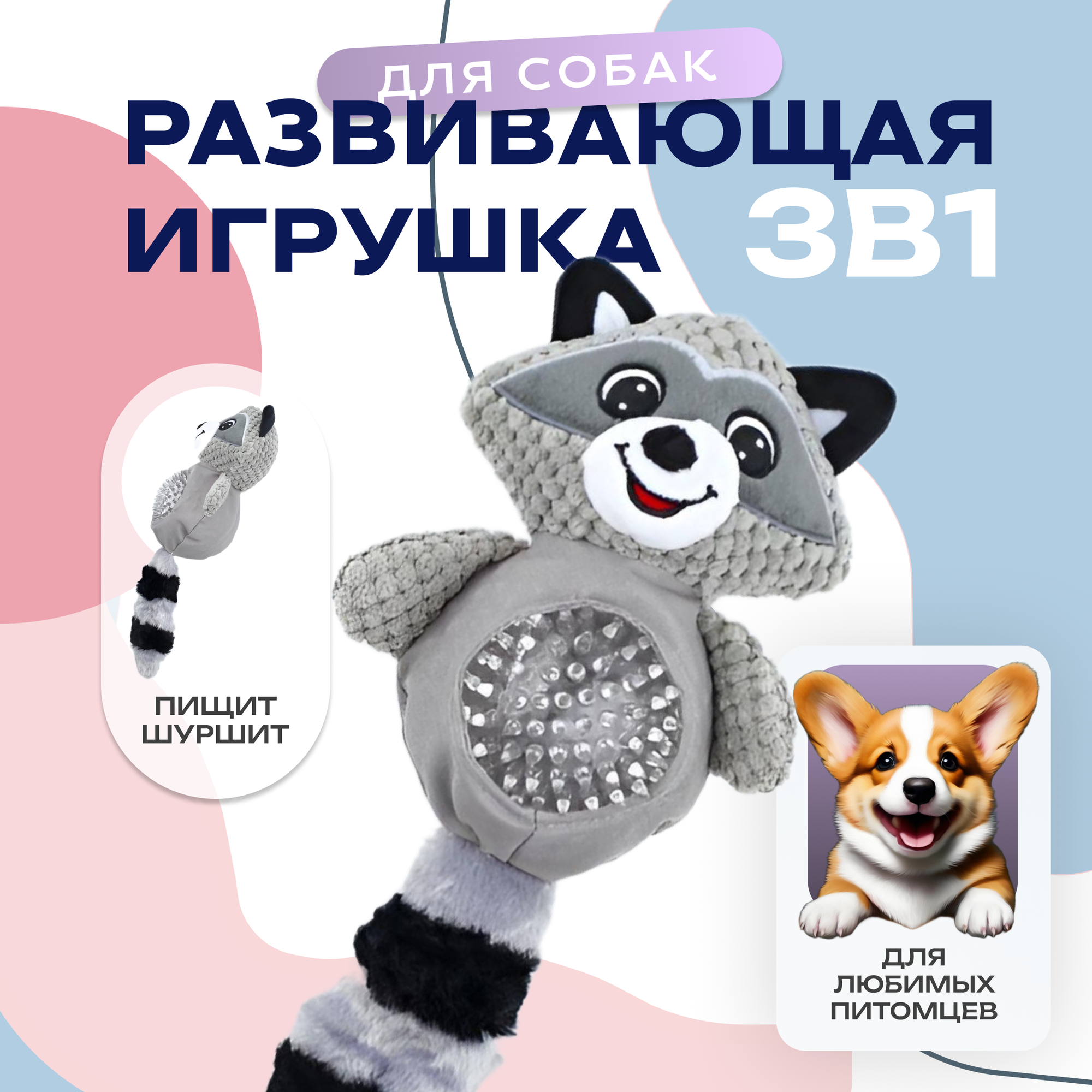 10 цен на Мягкая развивающая игрушка для собак "Енот с мячом-пищалкой", для любых пород