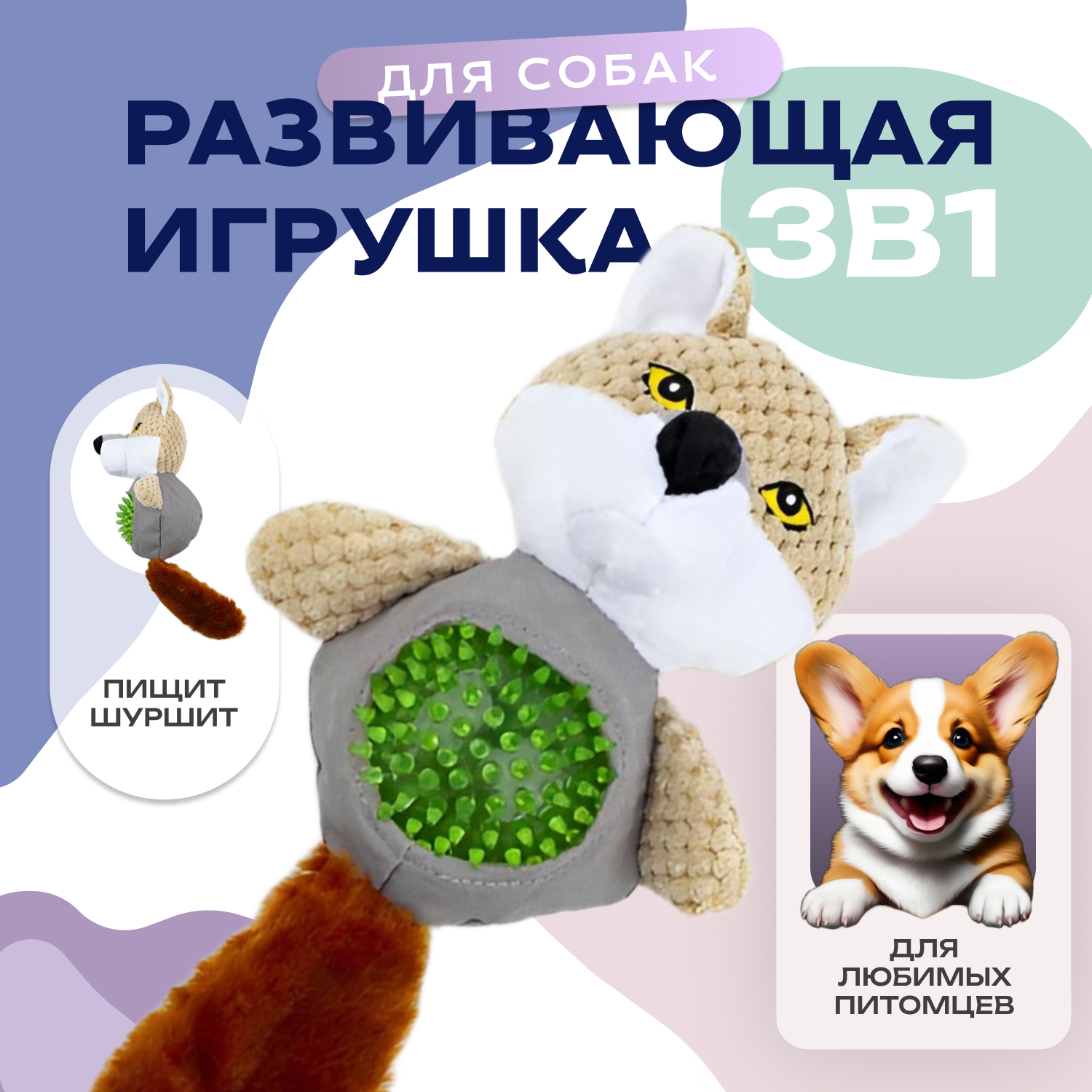 10 цен на Мягкая развивающая игрушка для собак "Лиса с мячом-пищалкой", для любых пород