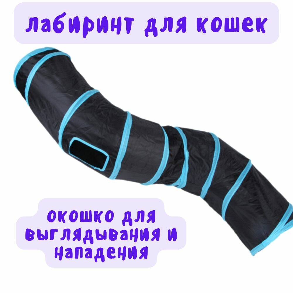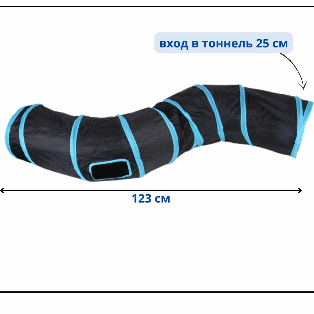 Тоннель для кошек игровой S образной формы 130 см, тоннель черный, набор игровой информация: