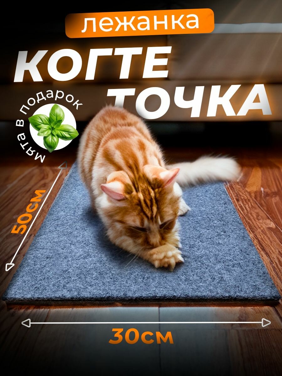 Когтеточка для кошки напольная лежанка с кошачьей мятой, 50х30 см/ серая информация: