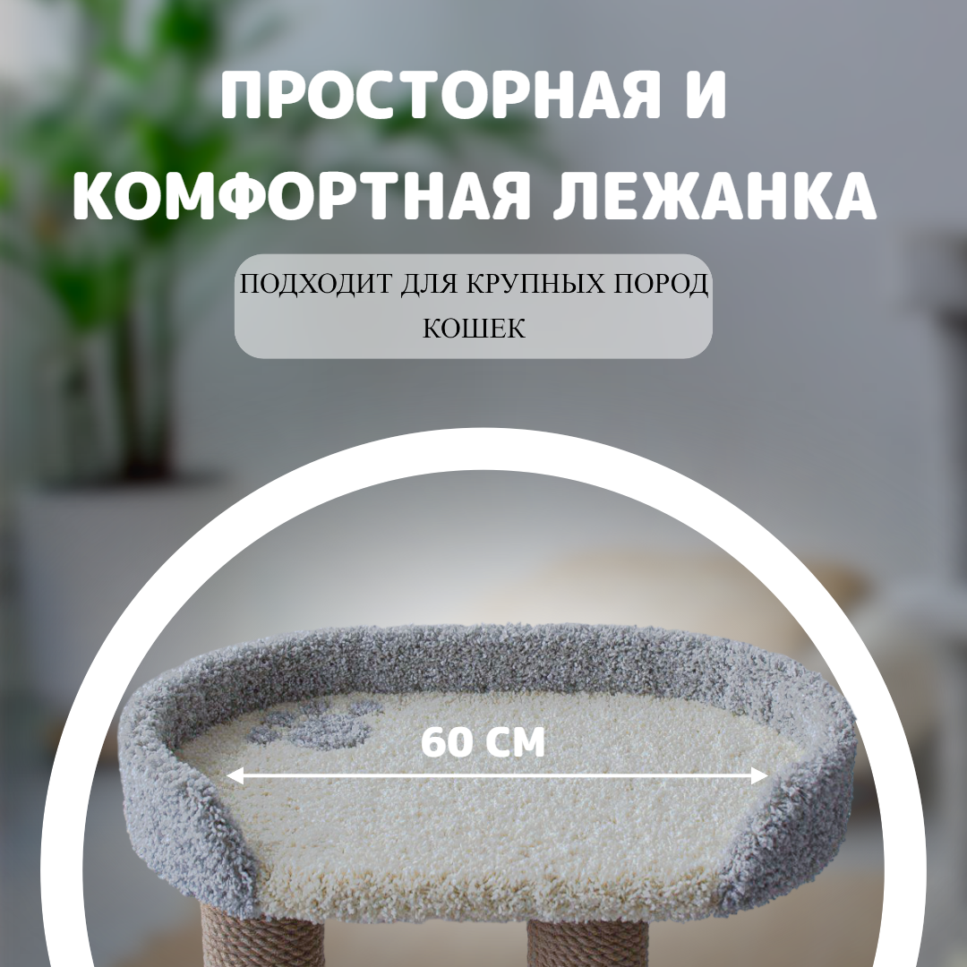 Когтеточка с домиком, Комплекс для кошки Вилла, цвет серый + молочный информация: