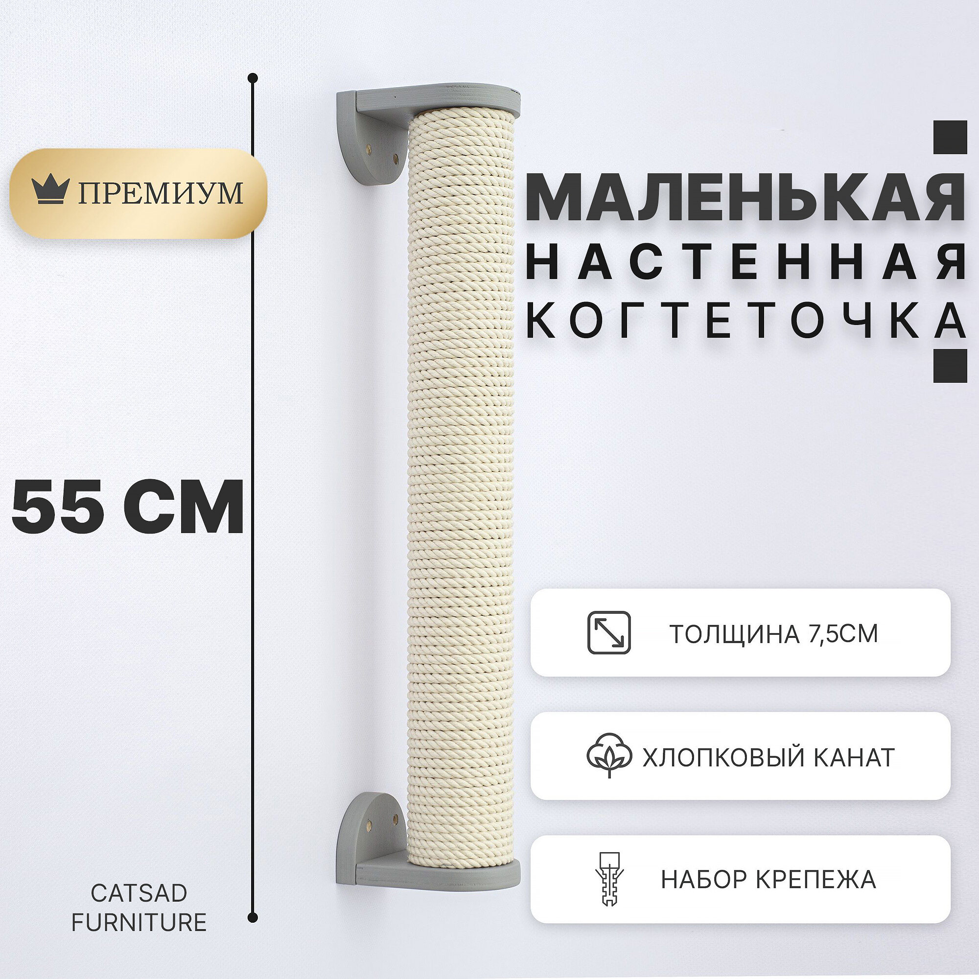 Большая настенная когтеточка-столбик двойная CATSAD, серый цвет, хлопок 6 983 ₽