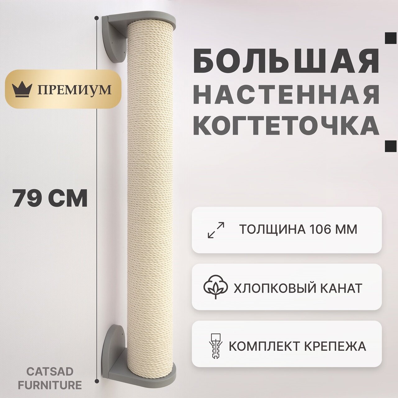 Большая настенная когтеточка-столбик двойная CATSAD, серый цвет, хлопок 6 983 ₽