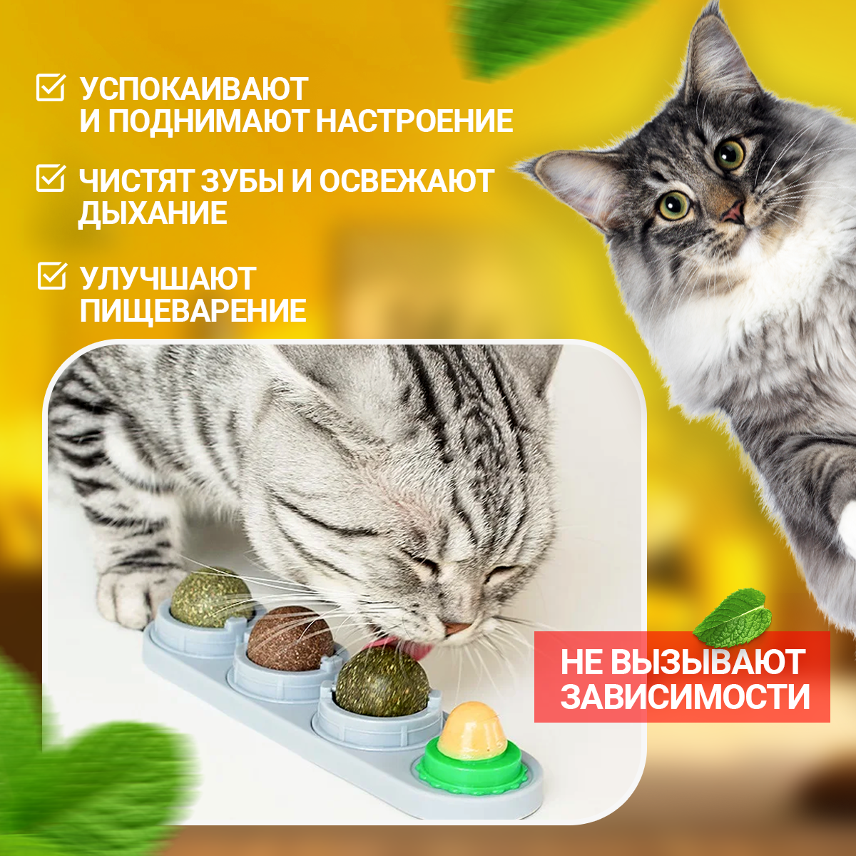 Леденец с кошачьей мятой, шарик лакомство для кошек 3 шт + конфета + мышка из кошачьей мяты . Цвет зеленый 599 ₽