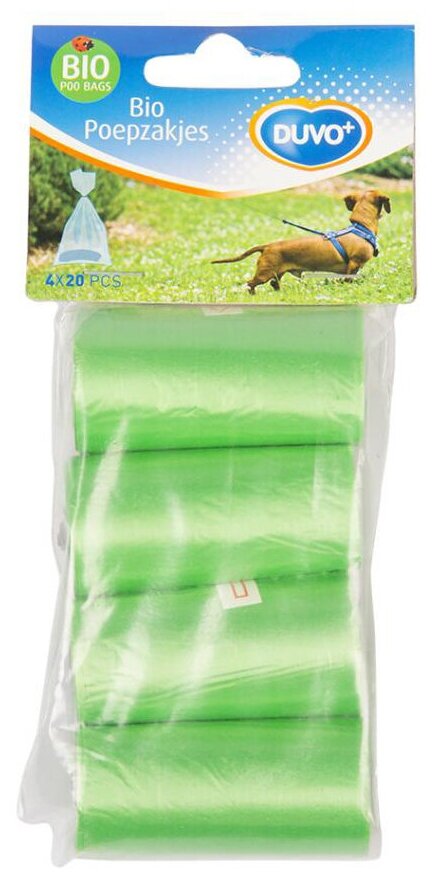 Пакеты биоразлагаемые для уборки за собакой DUVO+ "Био", зелёные, 33х20см, 4x20шт (Бельгия) информация: