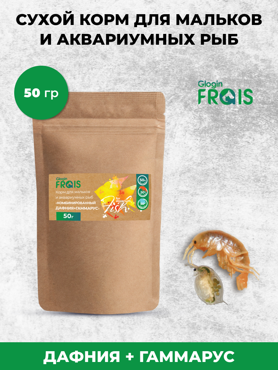 Корм для мальков и аквариумных рыб Glogin Frais Комбинированный дафния + гаммарус, 50гр информация: