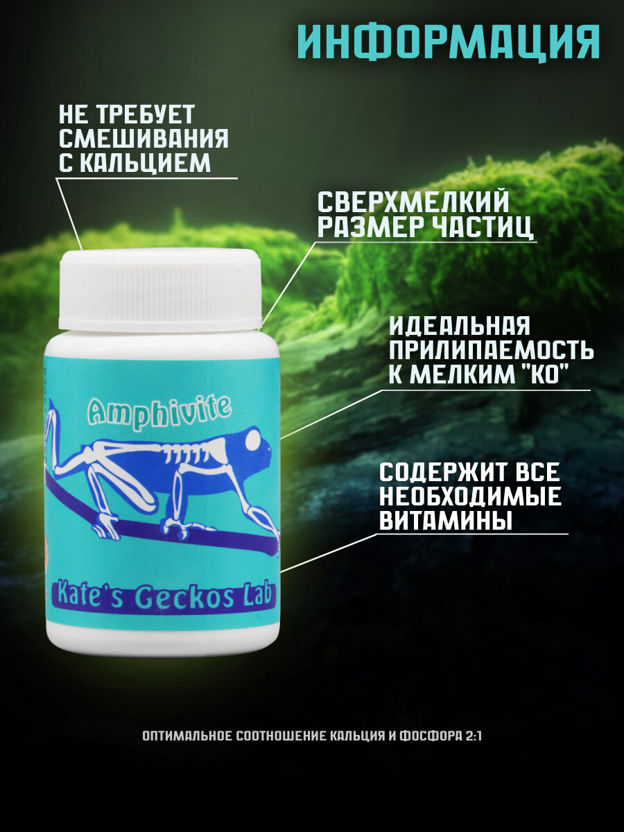 Витаминно-минеральный комплекс Kate's Geckos Lab Amphivite с D3 для амфибий 50 грамм информация: