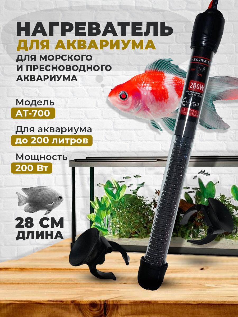 Нагреватель 200Вт стеклянный AT-700 до 200 литров информация: