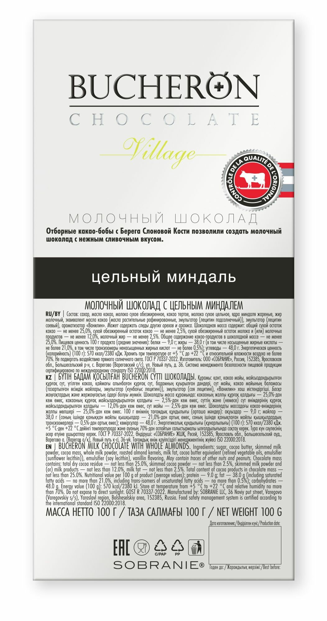 Шоколад BUCHERON VILLAGE молочный с цельным миндалем 2 шт. по 100г информация: