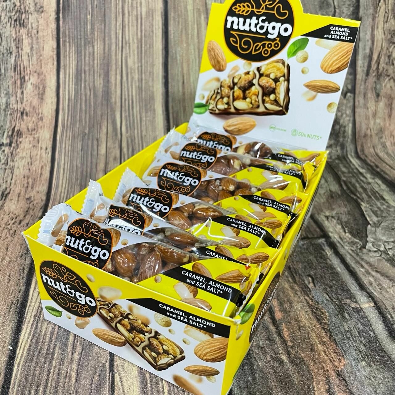 Батончик Nut and Go хрустящий миндаль в солёной карамели с морской солью, 18шт