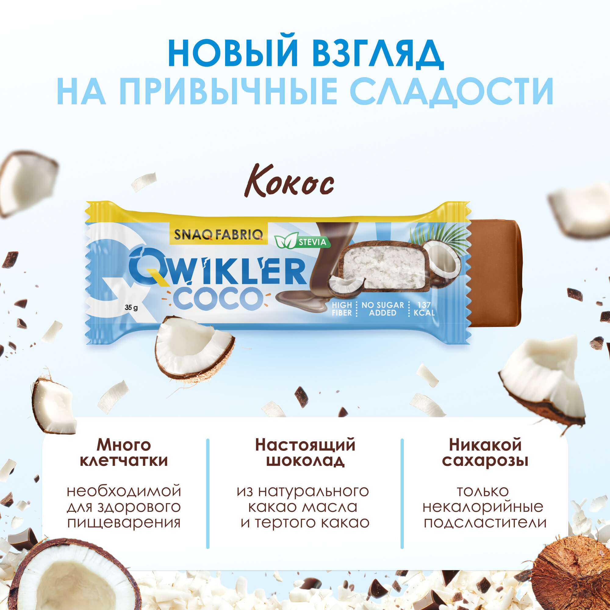 10 цен на Батончик глазированный SNAQ FABRIQ Qwikler без сахара "Кокосовый" 35 г х 12
