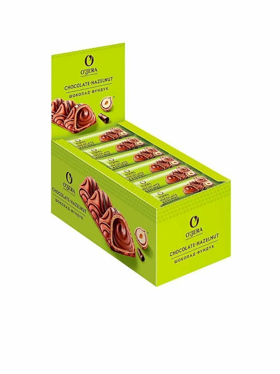 Вафельный батончик В молочном шоколаде с начинкой на основе фундучной пасты, "OZera" Chocolate-Hazelnut 24 батончика по 23 грамма