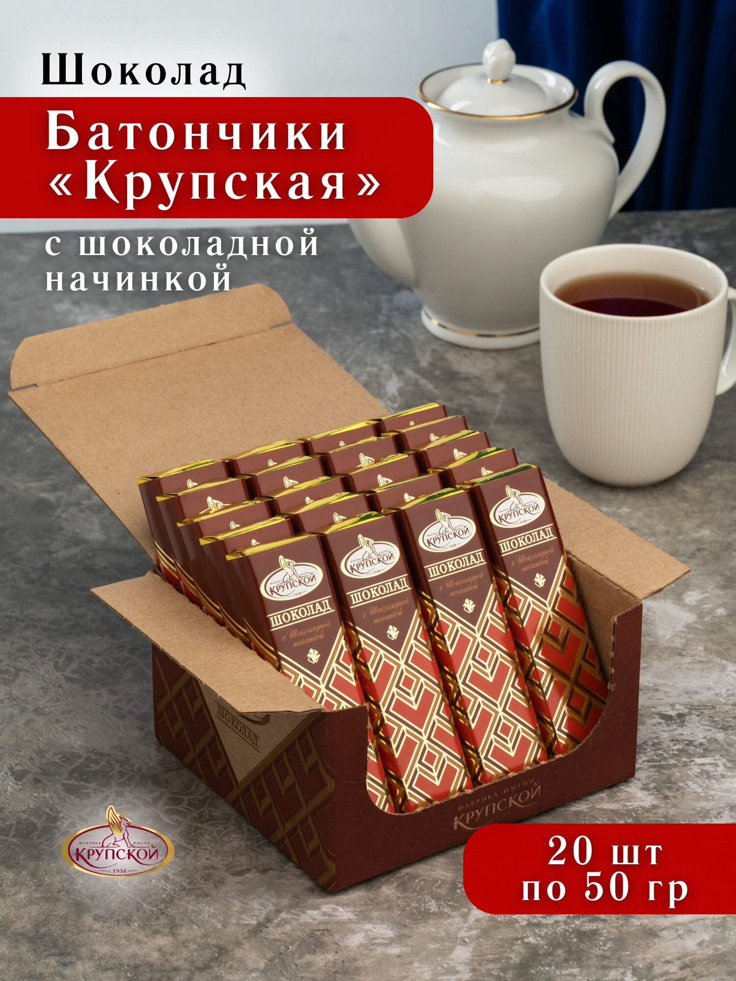 Шоколадный батончик Крупской с шоколадной начинкой 50 гр х 20 шт.