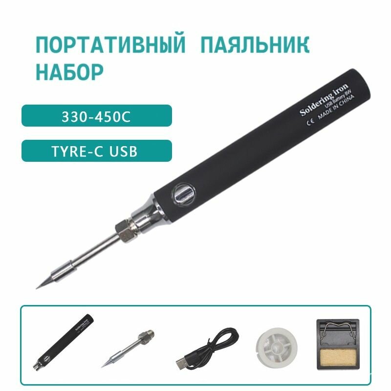 Паяльник 8 Вт портативный с аккумулятором, USB Type-C, Нихромовый нагреватель, портативный, черный информация: