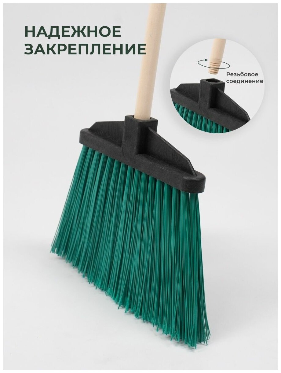 Метла Vega, синтетическая, для улицы, круглая, 3 кольца, щетина 30см, с дерев. черенком 120см, 360668