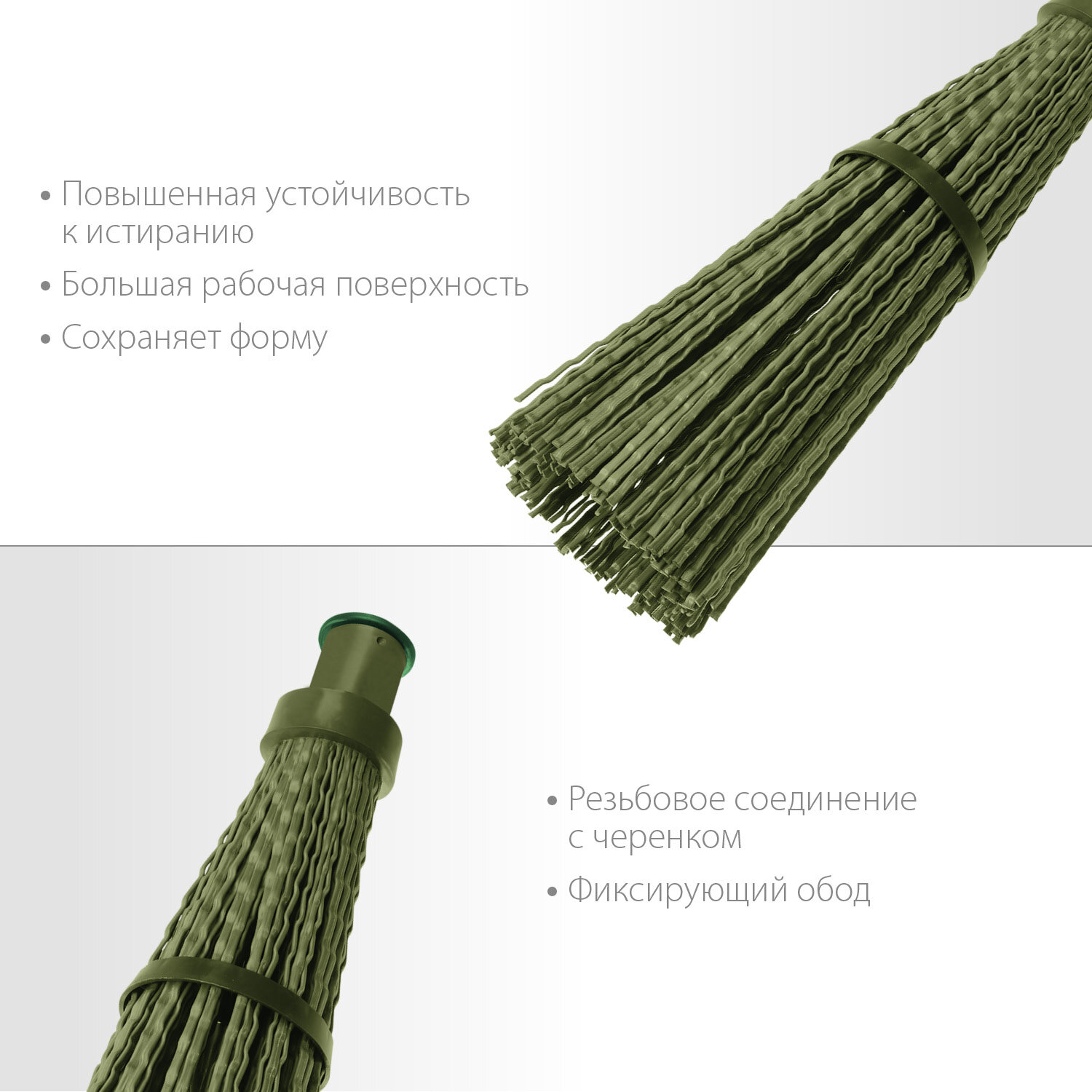 Отзывы на СИБИН 440х190мм, круглая с фиксирующим ободом, полипропилен, коническое резьбовое соединение, пластиковая метла (39223)