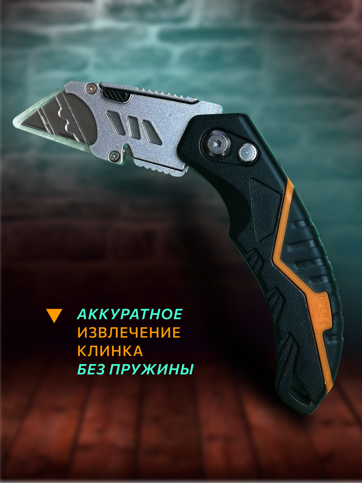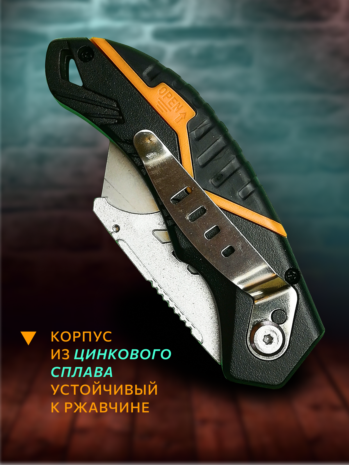 Нож складной 2в1 усиленный со сменными трапецевидными лезвиями, в Подарок чехол и запасные лезвия