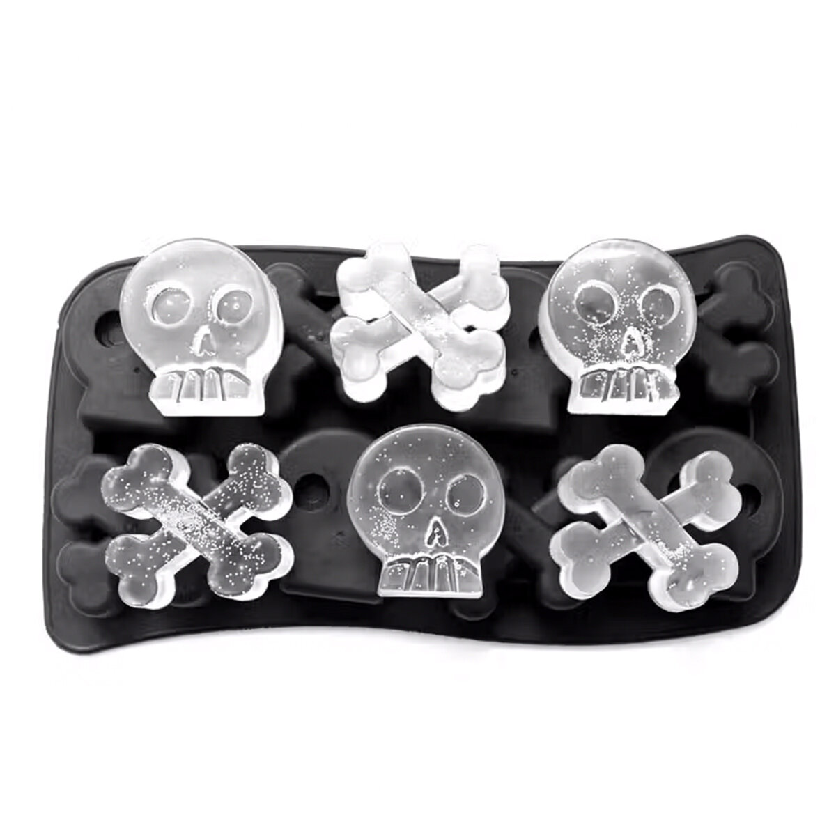 10 цен на Форма для льда / шоколада / Формочка для конфет "Кости и черепа" (8 кубиков) (Чёрная)