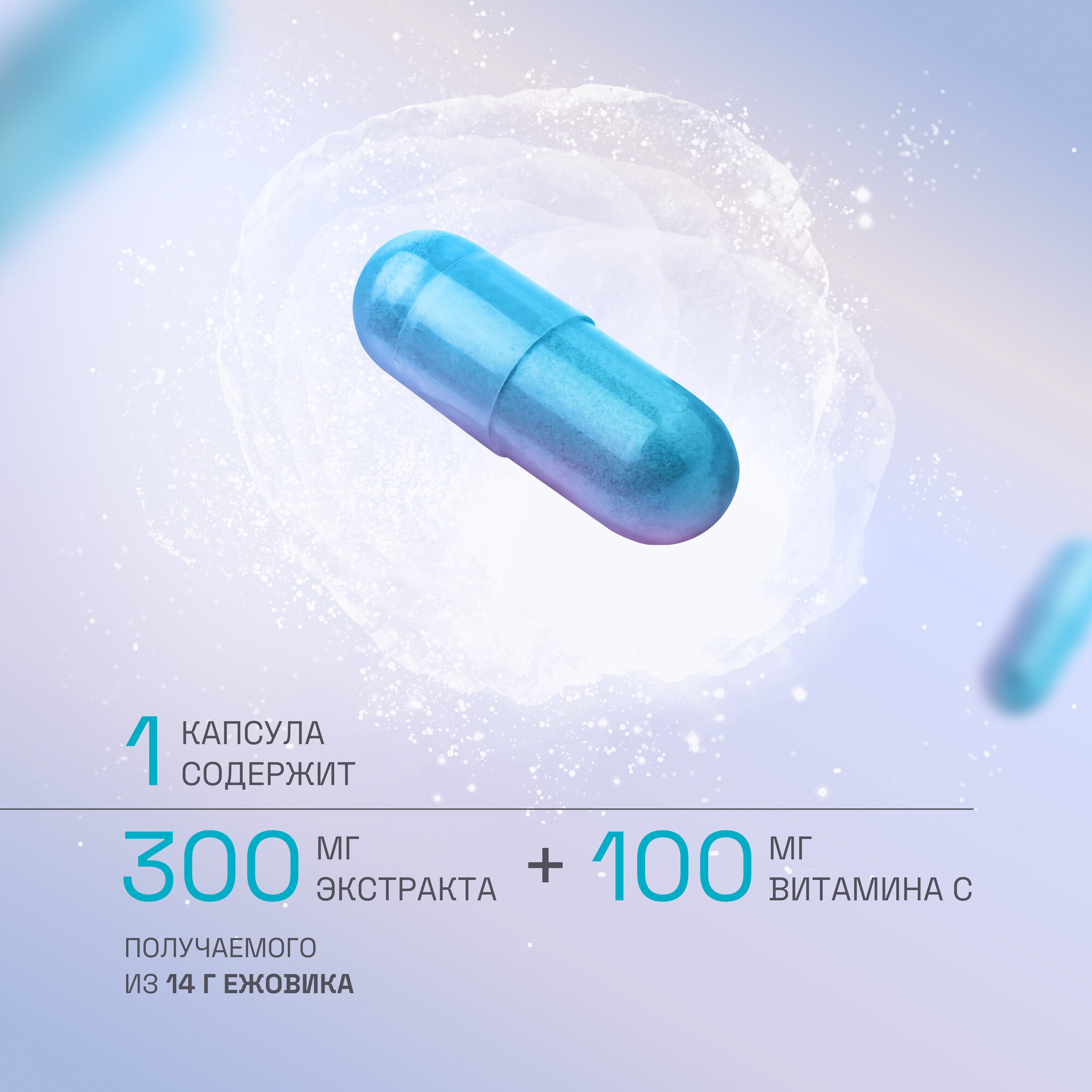 | Состав | Экстракт плодовых тел Ежовик гребенчатый, Экстракт мицелия Ежовик гребенчатый, Аскорбиновая кислота, Капсула желатиновая. |