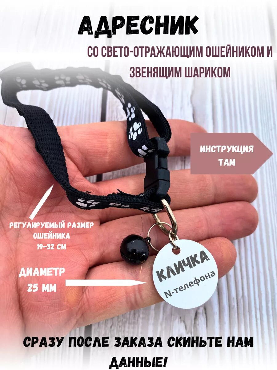 Адресник с ошейником и звенящим шариком информация: