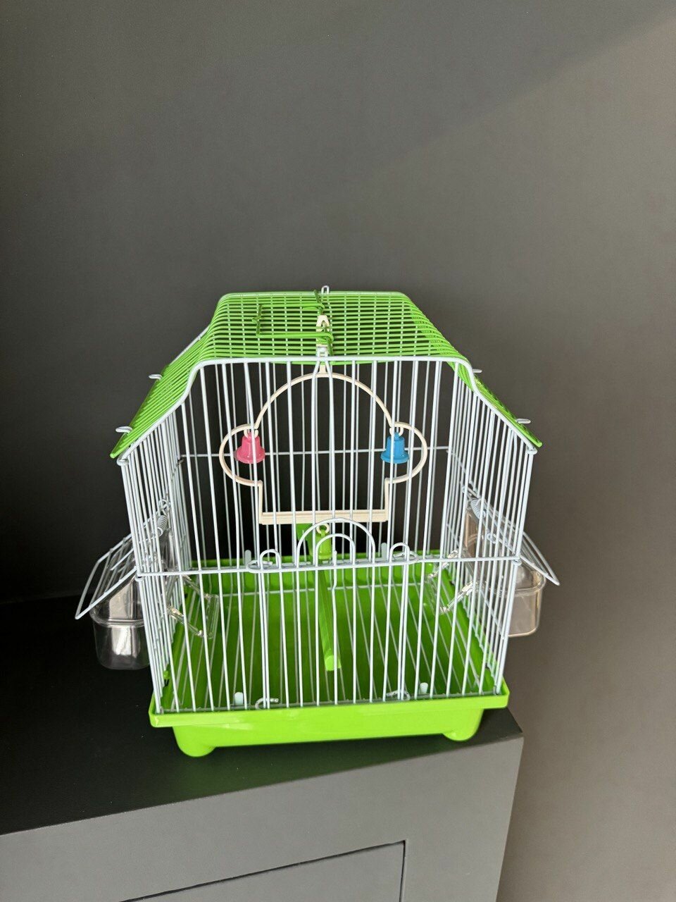 Отзывы на Клетка для птиц 22.5х17х28 см., фальшдно, две поилки-кормушки, жердочка, качели, зеленый