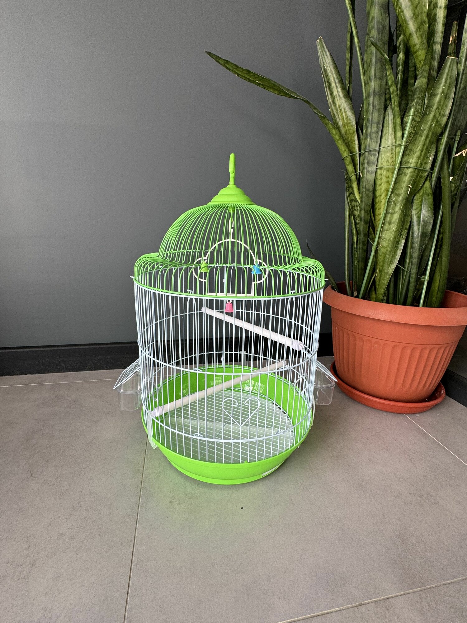 Отзывы на Клетка для птиц, 34х34х55 см., выдвижной поддон, фальшдно, поилки-кормушки, жердочки, качель, зеленый