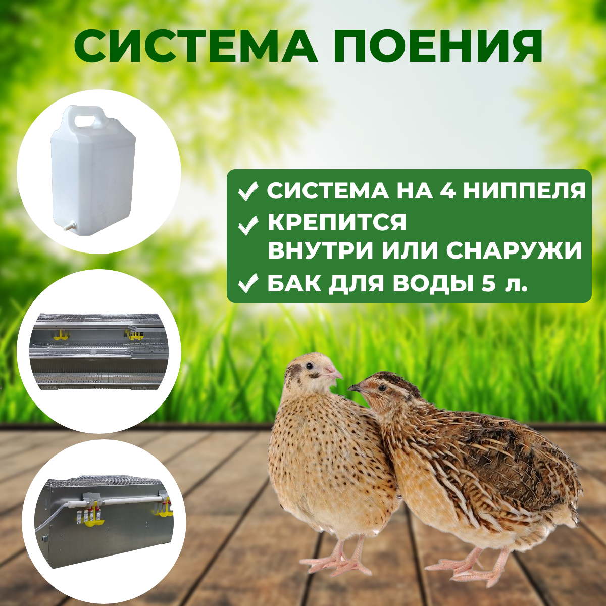 | Комплектация | навесные бункерные кормушки, система ниппельного поения с каплеуловителями и емкостью для воды на 5 л, поддоны для помета высотой 3 см |
