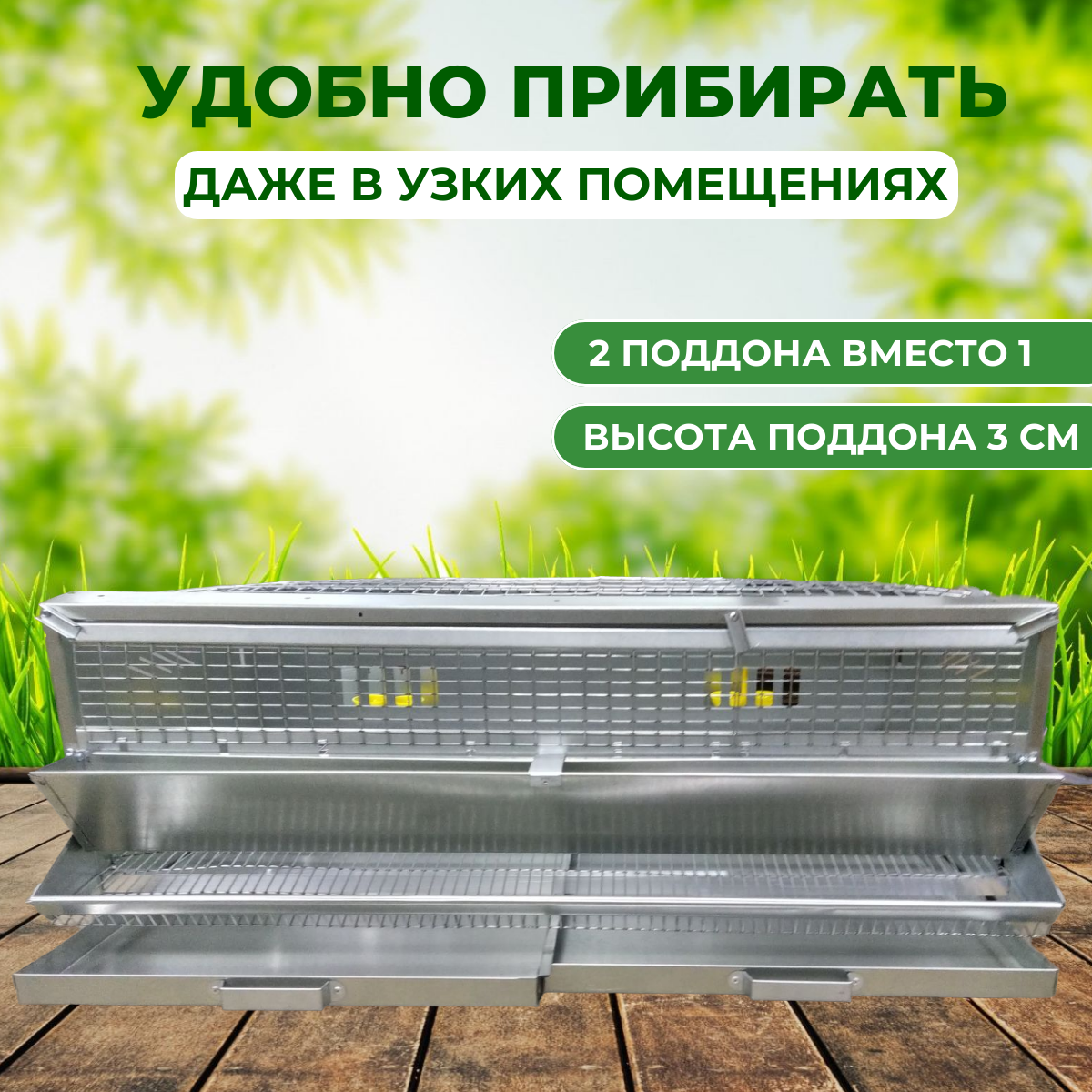| Особенности | выдвижной поддон / ножки / разборная конструкция / с изолированными секциями / вертикальное / горизонтальное расположение прутьев |