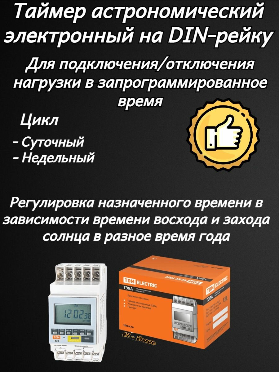 Таймер электронный ТЭ8A-1мин/7дн-8on/off-16А-DIN TDM информация: