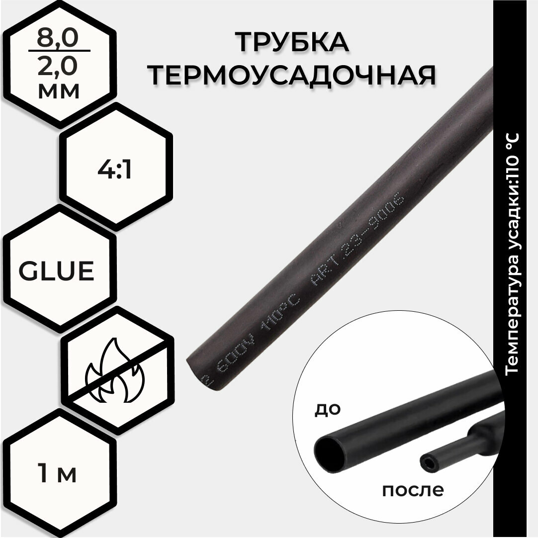 10 цен на Термоусадка клеевая двустенная 8,0 / 2,0 мм, (4:1), черная 1 м REXANT
